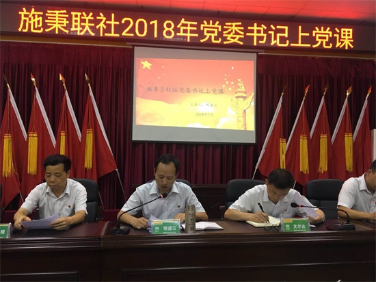 (圖為 縣聯社黨委書記、理事長為參會黨員上黨課)