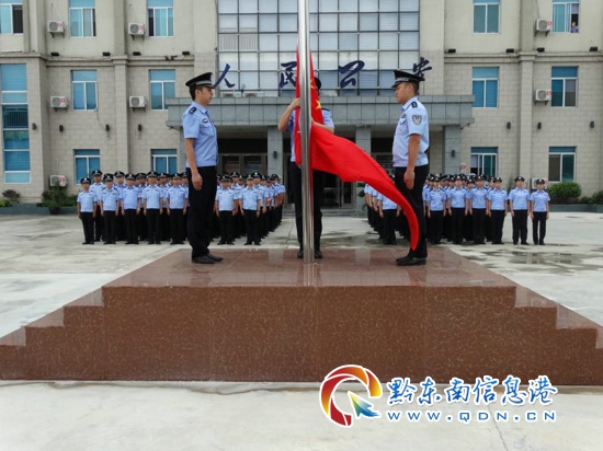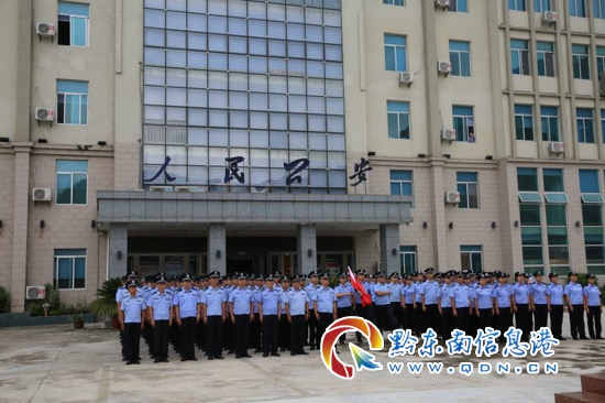 施秉縣公安局大院內100余名公安民、輔警精神飽滿,莊嚴地舉起右手,全體人員警容嚴整、神情莊重,用莊嚴的敬禮表達對黨和人民的無限忠誠,堅定廣大民、輔警立足本職、愛崗敬業、為民奉獻,為警徽增輝,為國旗添彩、為實現偉大中國夢的無限信心和決心。