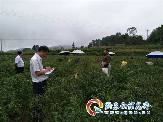 (圖為 信用社工作人員在調查貧困戶辣椒種植情況)