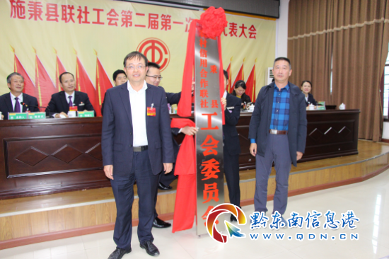 圖為 參會領導為施秉縣聯社工會委員會揭牌