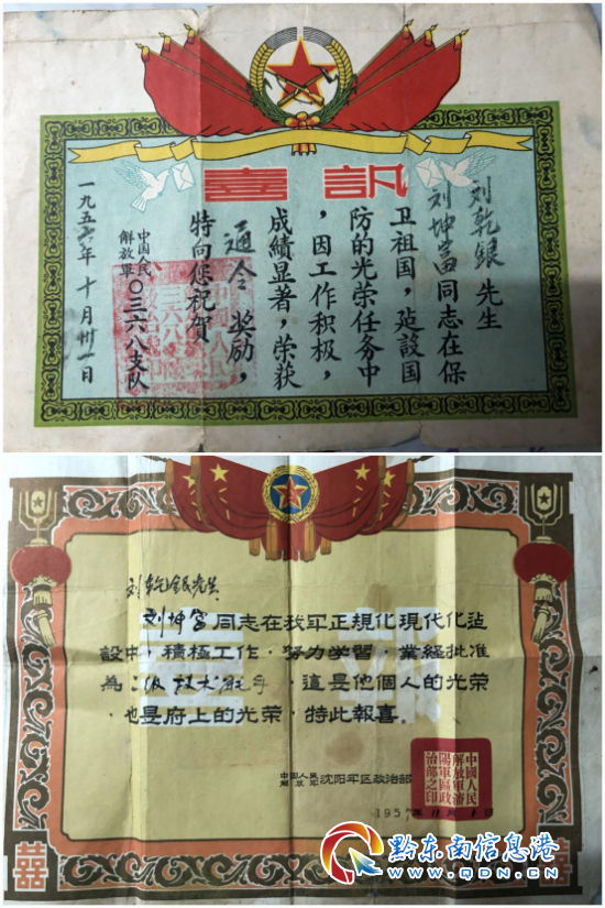 (圖為 劉坤富老英雄在部隊獲得的獎狀)