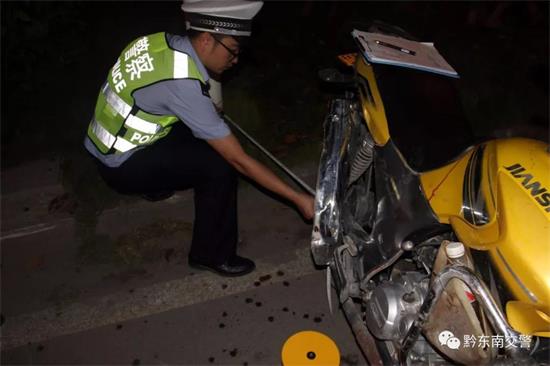當(dāng)天下午18時37分,三穗交警大隊接110轉(zhuǎn)警稱:在工業(yè)園區(qū)千惠服裝廠門口這里發(fā)生了一起摩托車與小車碰撞的交通事故,有人受傷,請出警。大隊值班民警迅速趕赴現(xiàn)場,通過現(xiàn)場勘察、調(diào)取該路段監(jiān)控視頻和雙方當(dāng)事人供詞,得知事發(fā)原因為:一輛號牌為湘N的小車從陸寨往園區(qū)行駛,行駛至美敏大道600米處時,該車駕駛員羅某打左轉(zhuǎn)向燈左轉(zhuǎn)彎時,一輛號牌為貴HS7948號普通二輪摩托車越過道路中心雙實線從后面急馳而來,超了一輛摩托車后又準(zhǔn)備超羅某駕駛的小車,就在羅某左轉(zhuǎn)彎時摩托車仍不減速避讓,直接撞上了羅某駕駛的車輛,造成摩托車和小車受損,摩托車駕駛?cè)藯钅澈湍ν熊嚦塑嚾艘δ呈軅慕煌ㄊ鹿省?/p>
