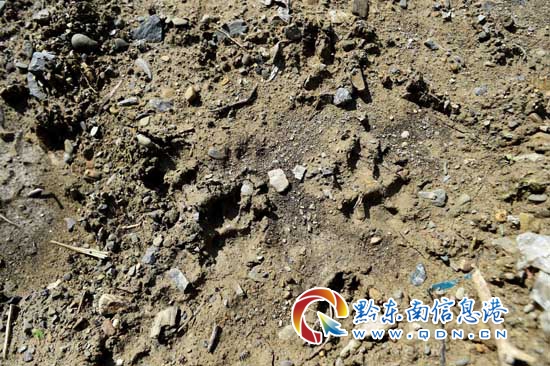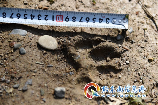 當日,貴州省臺江縣森林公安局接到報警,在臺江縣萃文街道高寨村高寨電站“噶養八略”(地名)山林河邊,有村民發現一連串不明大型動物腳印。當地森林公安局立即前往現場開展走訪調查,并聯系貴州大學生物多樣性與自然保護研究中心專家組前往現場進行勘察,在海拔1230米的深山老林河灘邊,共發現50多個同樣大小的動物腳印,腳印呈梅花狀,屬大型貓科動物所具有,直徑均在12厘米左右,前后掌的步幅約為1米。同時,調查人員還對部分較完整的足跡樣本和圖片資料,進行現場采集,并將樣本送至貴州大學生物多樣性與自然保護研究中心進行檢驗。