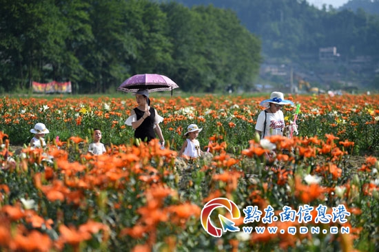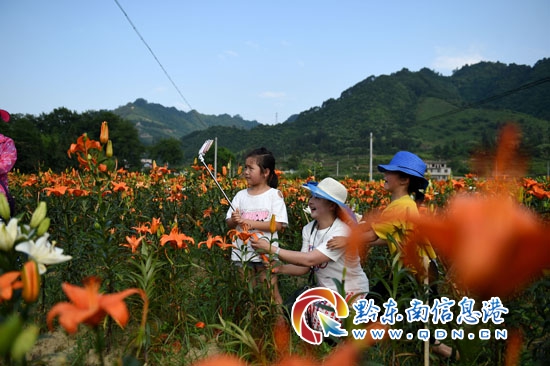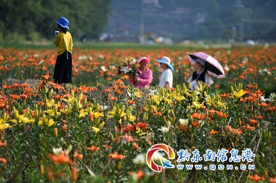 繽紛初夏,貴州省臺江縣老屯鄉榕山村的400余畝百合競相開放,芬芳四溢的百合花吸引眾多游客前來觀賞和選購,帶火鄉村旅游。2016年開始,臺江縣老屯鄉加快農業產業結構調整,以“公司+合作社+農戶”的模式實施百合花種植扶貧項目,積極引導農戶大力發展特色種植業,帶動發展鄉村旅游業,促進當地村民增收。目前,老屯鄉榕山村的百合基地內種植了26個品種的240萬株百合花,花期將持續到7月中旬。(劉開福 )