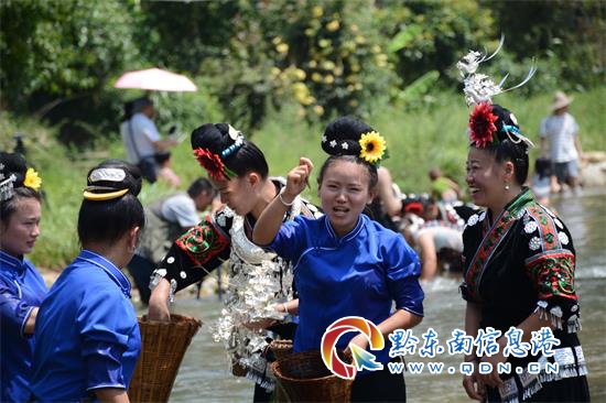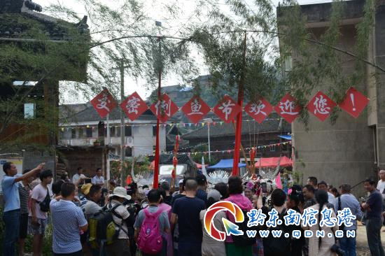 “倒魚節”是交密村苗族傳統、獨特的求雨節日,于每年農歷七月初二舉行,全村沿河而建,環境優美,具有得天獨厚的水資源優勢。8月12日,節日當天,四里八鄉數千名村民來到翁密河畔,參加一年一度的“倒魚節”,為來年祈求風調雨順、國泰民安。