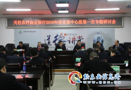 本網訊 2月5日,天柱農村商業銀行黨委中心組2018年第一次專題研討會在總行五樓會議室召開。總行班子成員、各黨支部書記、各黨支部委員、黨委辦工作人員參加會議。黨委副書記、行長張華主持研討會。