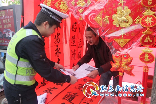 圖四為民警就近在街面宣傳交通安全。