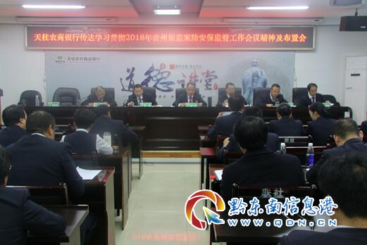 本網訊 3月16日,天柱農村商業銀行在總行五樓會議室召開專題會議,傳達黔東南銀行業2018年案防安保工作會會議精神,總行班