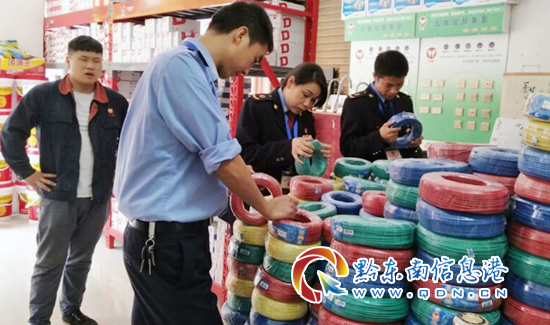 按照“管行業必須管安全、管業務必須管安全、管生產經營必須管安全”的總要求開展整治。查電器插頭插座、電線電纜、開關、消防產品等的包裝、標識、標牌及產(商)品質量安全行為,看是否存在虛假宣傳及商標侵權等行為。目前,檢查電器生產企業3家,經營戶116戶,均未發現質量及違法生產經營行為。圖為檢查現場。(楊華 楊秀明、楊應添 攝影報道)