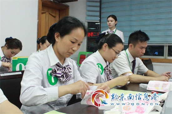 在隨后的業務技能測試中,來自全行各營業網點的業務能手齊聚一堂。精神飽滿、爭先恐后、各顯身手,圍繞單指手工點鈔、多指手工點鈔、機器點鈔、文字錄入、翻打傳票、硬幣捆扎、存貸款利息計算等項目盡情展示自己的技藝,顯示出較高的專業水準。經過兩個小時的緊張測試,圓滿完成了各個測試項目。參加此次測試的共有19人次,評出一、二、三等獎各1名,單項能手獎7名。