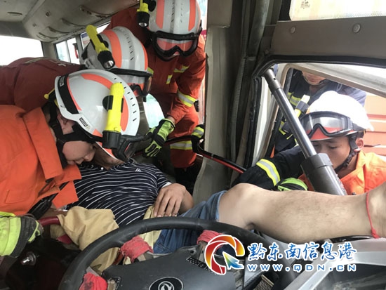 本網訊 6月12日下午17時許,天柱縣社學鄉社學往芹香寨方向發生車禍,一輛大貨車與小客車相撞,導致小客車駕駛員被困車內,情況緊急。當地消防接警后迅速趕赴現場實施救援,經過20分鐘的緊急救援,成功救出被困司機。