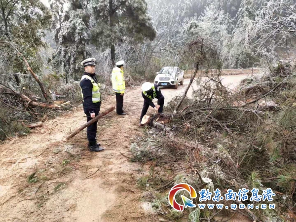 凝凍來(lái)襲,大樹橫斷公路,交警化身“伐木工”