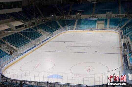 江陵冰球中心,即冬奧會冰球比賽場館館。現場可容納一萬人左右。中新社記者吳旭攝