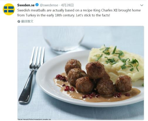 該推文表示,瑞典肉丸其實是根據瑞典國王查理12世(King Charles XII)于18世紀初,從土耳其所得的食譜制作而成。