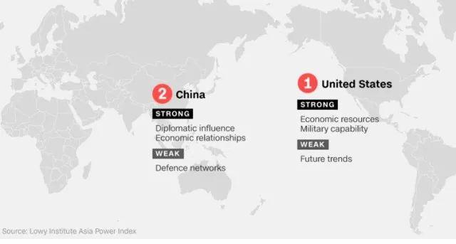 比如,美國CNN就專門報道了這個排名,并在報道中寫到:“雖然美國現在排名第一,但這一報告的項目負責人認為中國很可能在接下來的幾年里就會取代美國——如果特朗普政府【真要讓美國從亞太地區撤出】 的話”……
