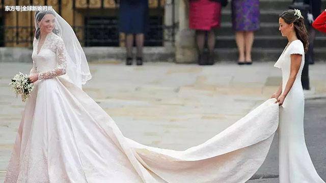 相比起戴安娜王妃25英尺(7.6 米)長的婚紗,凱特王妃的婚紗裙尾十分低調。