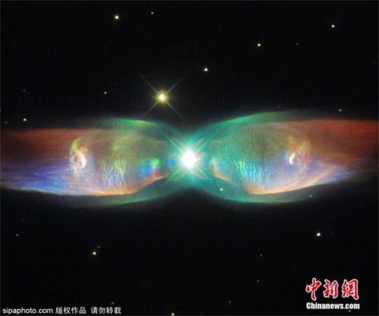 中央恒星系統(tǒng)像雙葉花開(kāi)般向外伸展,延展出去的氣體噴流就成了形成了一個(gè)拉長(zhǎng)的“氣泡”。遠(yuǎn)遠(yuǎn)看去,好像一只蝴蝶在遙遠(yuǎn)的宇宙中翩翩起舞。