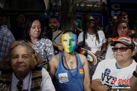 資料圖:當地時間2016年6月26日,美國紐約舉行規模盛大的同性戀驕傲大游行。男同性戀、女同性戀、雙性戀、變性人,以及他們的支持者紛紛走上街頭。中新社記者 廖攀 攝
