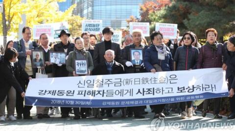 韓國受害勞工及家屬舉行集會抗議(韓聯社)