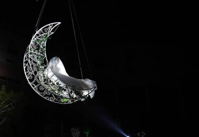 2018年5月9日,杭州一酒店為一對新人量身定制了一場以“飛行”為主題的童話婚禮,新娘從40米高空吊威亞“飛行”入場,體驗飛翔的樂趣。