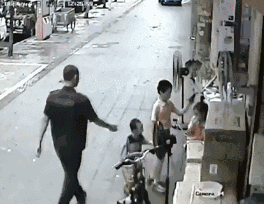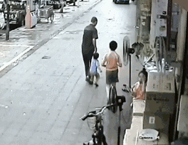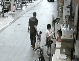 據了解,5月9日中午12點25分左右,在雁田市場門口的一家電器店外,當時孩子的父親鄭先生與妻子正在店內忙生意,三個孩子正在玩耍,一位身著黑色上衣的男子走上前來,先是摸了摸小孩的下巴,隨后便拉住小孩的手臂向前拖拽了幾步,緊接著小孩哥哥感覺不對勁,就急忙上前將弟弟抱住帶了回來。