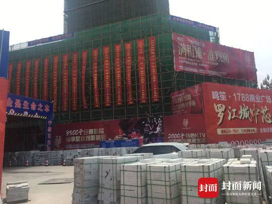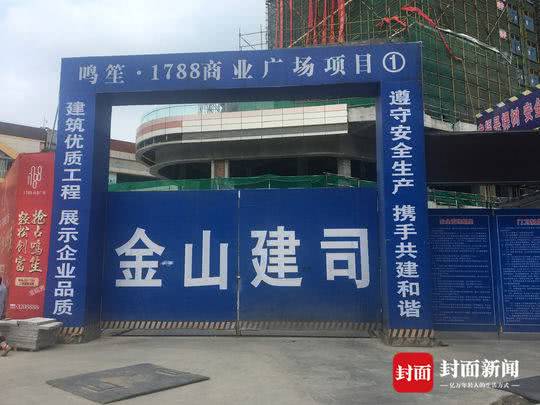 5月21日,1788工地上,大門緊鎖。樓體上,慶祝商家入駐的大紅色條幅,還在迎風招展。幾個市民在樓下抬頭仰望,其中一名女子表示,她已經買了其中一套房子。