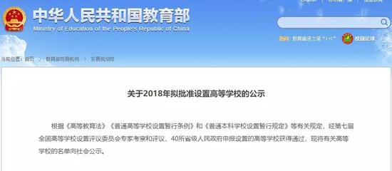 根據《高等教育法》《普通高等學校設置暫行條例》和《普通本科學校設置暫行規定》等有關規定,經第七屆全國高等學校設置評議委員會專家考察和評議,40所省級人民政府申報設置的高等學校獲得通過。