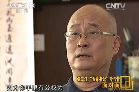 湖北天門原市委書記張二江因“吹、賣、嫖、賭、貪”俱全,被冠以“五毒書記”的名號。結束了近10年的服刑生涯后,頂著一頭白發的他開始了全新的生活。