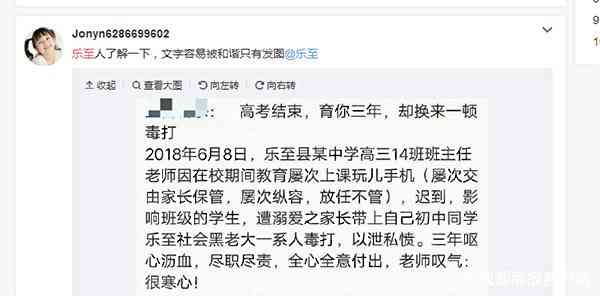 “高考結束,育你三年,卻換來一頓毒打。”6月8日晚以來,該網貼在微博、貼吧及樂至當地微信群等流傳。