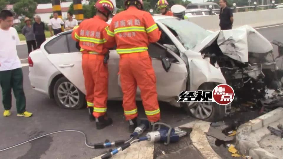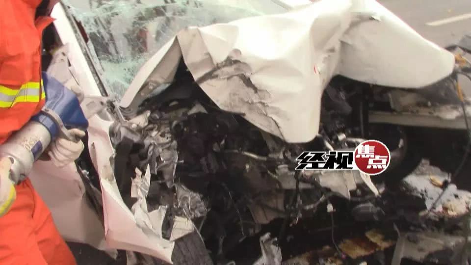小車車頭被直接撞沒,司機(jī)頭部被安全氣囊抵住,已經(jīng)昏迷,女留學(xué)生受到慣性影響被沖到前排,也不省人事。