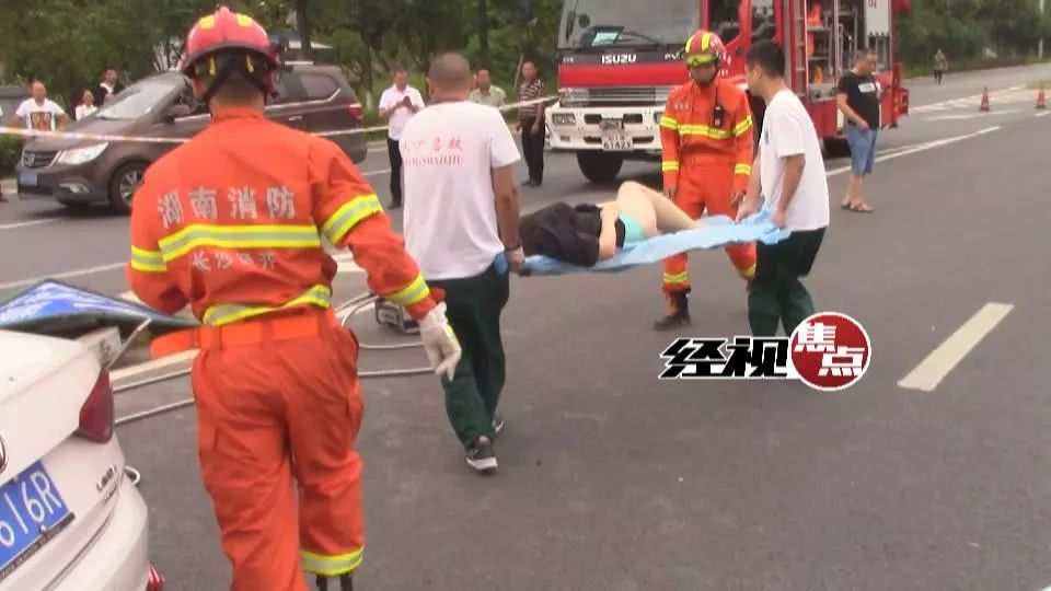 因為車輛撞擊猛烈,車門強(qiáng)行剪不開,通過轉(zhuǎn)動副駕駛座,試著將女留學(xué)生從后座救出。