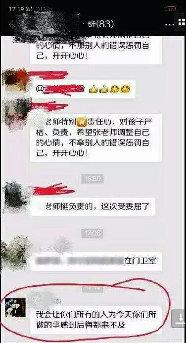 在家長群里都在維護張老師時,王某還在群里說“我會讓你們所有的人為你們今天所做的事感到后悔都來不及”