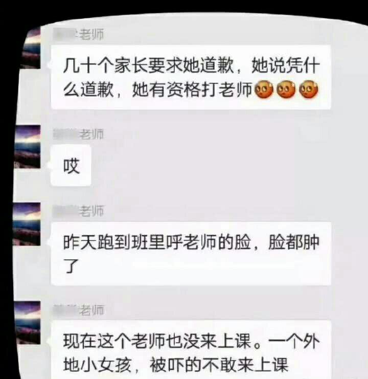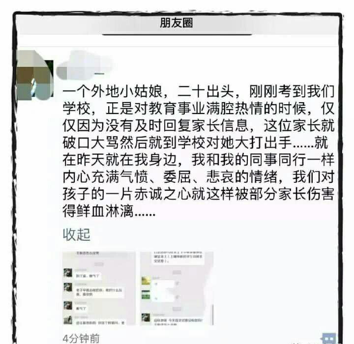 此事一發,教師們紛紛義憤填膺:一個外地來的小姑娘,平時也盡忠盡職,僅因為沒及時回復消息,就要受這種侮辱,太過分了!