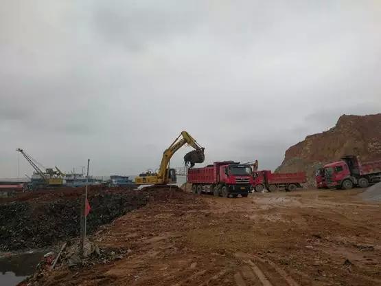 圖1都昌縣緊急調來大型機械,挖掘清理鄱陽湖磯山生活垃圾 非法填埋點里的垃圾