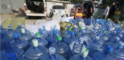 經(jīng)偵查發(fā)現(xiàn),該大院內(nèi)系生產(chǎn)、銷售假冒桶裝水窩點。同時,偵查人員充分掌握了該窩點的人員信息、作案流程和下線水站相關(guān)情況。