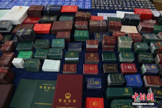 資料圖 警方收繳的假證。中新社發(fā) 鐘欣 攝