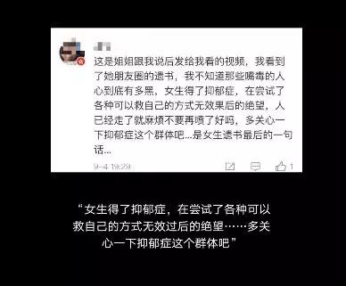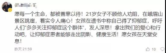有認識該女子的網友發表評論,稱“女生得了抑郁癥,在嘗試了各種可以救自己的方式無效過后的絕望......”。