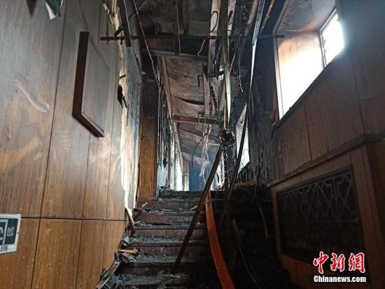 圖為起火酒店一片狼藉。 解培華 攝