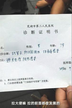 涉事幼兒園一幼兒的診斷證明書。新京報(bào)我們視頻截圖