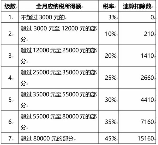 PS:表格上的3000,是指超過5000起征點的部分(即5000-8000),對應3%的稅率。
