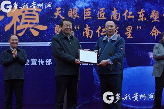 10月15日,由中宣部、中科院、中科院國家天文臺等有關單位及貴州省委宣傳部共同主辦“時代楷模”天眼巨匠南仁東塑像落成暨“南仁東星”命名儀式,在貴州省平塘縣500米口徑球面射電望遠鏡(簡稱FAST)現場舉行。