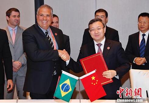 資料圖:中國商務部副部長王受文與巴西工業外貿和服務部副部長馬塞洛·馬亞在上海簽署了《中華人民共和國商務部與巴西工業外貿和服務部關于服務貿易合作的諒解備忘錄(兩年行動計劃)》。 中新社記者 張亨偉 攝