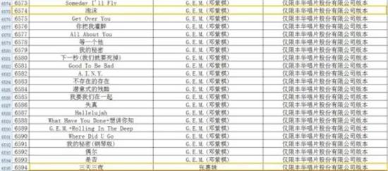 翻看需要下架的6609首歌曲,發現絕大多數都是粵語歌曲,其中英皇娛樂(香港)有限公司版本的作品多達3800余首。