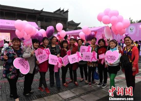 資料圖:重慶市民手舉“關(guān)愛女性健康”等字樣牌子,呼吁大家關(guān)愛女性。 周毅 攝