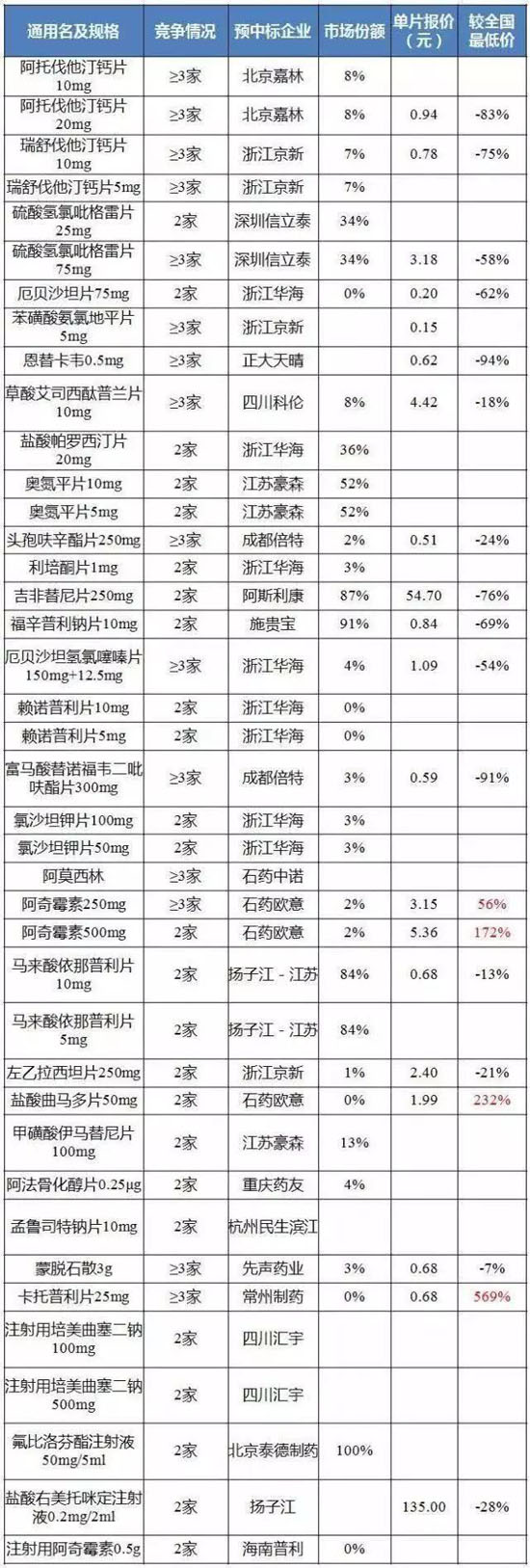預(yù)中標(biāo)品種價格降幅普遍較大。