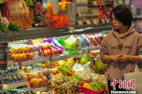 10月16日,一名消費者在超市選購商品。中新社記者于海洋攝