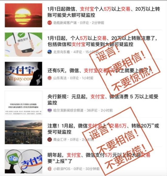 明年起支付寶個人轉賬、取現超5萬元要上報?謠言!