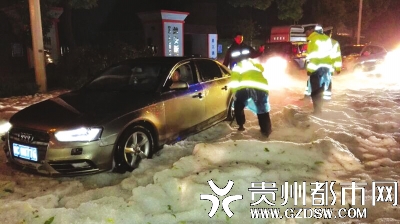 5月1日,安順城區遭遇冰雹襲擊,多彩萬象城冰雹積聚的路段大約長300米,最深處達到了半米,占據了西航路延伸段雙向3車道,導致交通癱瘓。