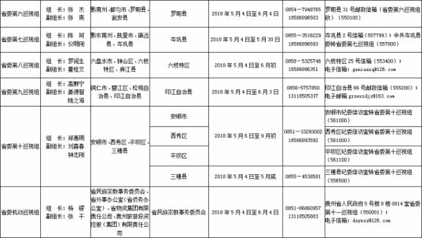 5月4日至5月9日,貴州省委11個(gè)巡視組陸續(xù)進(jìn)駐被巡視的44個(gè)地區(qū)和部門、企業(yè)開展巡視。