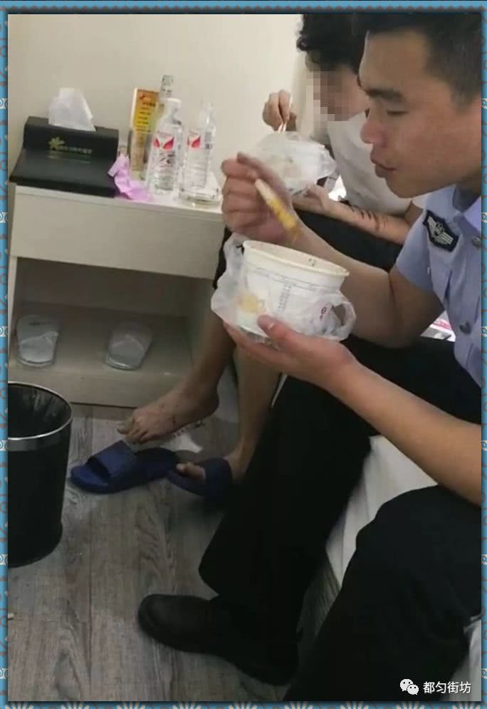 在現(xiàn)場(chǎng),民警嘗試與屋內(nèi)男子進(jìn)行溝通,但通過(guò)喊話、敲門(mén),屋內(nèi)沒(méi)有任何回應(yīng),隨即民警要求酒店工作人員打開(kāi)房門(mén),眼前一年輕男子躺在房間地上,左手手腕處有數(shù)道傷口,身旁放有一把小刀片,民警立即從單警裝備內(nèi)拿出警用急救包,對(duì)男子的傷口進(jìn)行止血,同時(shí)通知120到現(xiàn)場(chǎng)開(kāi)展救治工作。醫(yī)護(hù)人員隨后再次對(duì)該男子的傷口進(jìn)行處理,并將男子扶上救護(hù)車(chē)送往醫(yī)院。這時(shí),男子又大喊大叫起來(lái),稱不去醫(yī)院,要民警陪他聊天,不然接著自殺。為防止男子再次做出過(guò)激行為,民警買(mǎi)來(lái)食物陪在男子身邊與他談心。